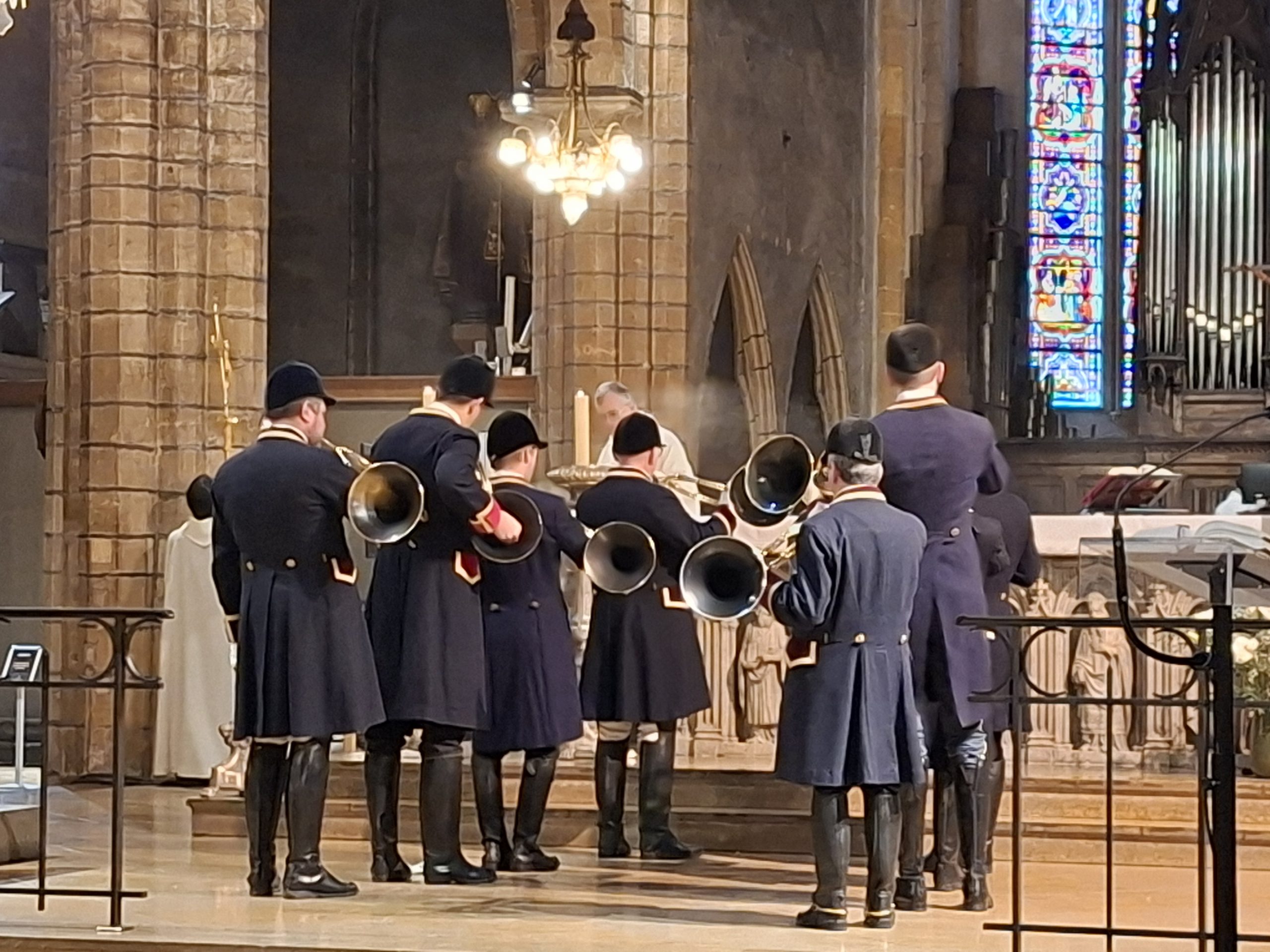 Je vous souhaite à tous la bienvenue dans cette basilique mémorable de Saint-Bonaventure. Nous regrettons tous l’absence de Son Altesse Révérendissime le Prince Rémy de Bourbon-Parme. J’adresse aussi la bienvenue au nouveau Président de la Présence du souvenir bourbonien (PSB) en Lyonnais, Monsieur Louis Daguebert, et à tous ceux qui avec lui ont préparé cette célébration. Je salue les membres de l’association ‘Trompes de Chasse de la Diane Lyonnaise’ et toutes les personnes qui ont tenu à prendre part à cette célébration eucharistique pour confier au Seigneur le défunt roi Louis XVI et tous les membres défunts de la famille de France, manifestant ainsi leur confiance en Dieu qui écoute la prière de ceux qui se confient à Lui.