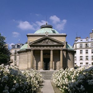 Passé le vestibule, les marches conduisent au jardin, ancien cimetière de la Madeleine dans lequel près de 600 victimes de la guillotine de l’actuelle place de la Concorde ont été placées en fausse commune, dont Louis XVI et Marie-Antoinette. « Nous sommes au cœur de Paris et la magie de ce jardin est d’être parfaitement calme. Un vrai lieu de mémoire », réagit-il. Entrons sous la nef de la chapelle de style néoclassique érigée par Pierre François Léonard Fontaine. Le plan est une référence au Panthéon de Rome. Deux statues, de Marie-Antoinette et de Louis XVI montrent les personnages historiques à l’épreuve de la souffrance. Louis XVI bénéficie d’une messe annuelle des Bourbons. Marie-Antoinette, elle, est la star du lieu, notamment après le film de Sofia Coppola.