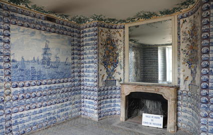 Depuis l’extérieur, le public peut apercevoir une autre salle de bains, celle du comte de Toulouse, construite en 1730. Du sol au plafond, pas moins de 6 000 carreaux de faïence de Delft sont assemblés. « Nous savons qu’à l’époque, 12 000 carreaux ont été commandés. Y en a-t-il eu une autre, à Versailles peut-être, qui aurait été cassée ensuite ? On ne sait pas », s’interroge Laurent Mortier. Reste cette pièce, tout en bleu et blanc, sublime, décorée de scènes maritimes.