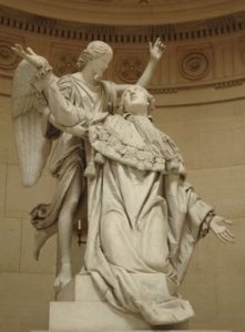Laure est notaire à Rouen. Elle connaissait déjà le testament de Louis XVI inscrit en lettre d’or sur une plaque de marbre noire placée sous la statue de la nef. « Ce serait le cauchemar des notaires d’aujourd’hui », s’amuse-t-elle. Mais bien que son étude l’appelle constamment sur son portable, Laure n’est pas venue ici pour travailler. « Avec mon fils, nous sommes entrés par hasard après être passés dans les grands magasins. Le plaisir de découvrir un beau site qui sort des sentiers battus par son originalité. Et puis il n’y a pas beaucoup d’affluence. On a un peu l’impression d’être les seuls à avoir osé pénétrer ici ». Derrière, une Brésilienne et une Chinoise franchissent le jardin, avec le même sentiment de visiter un lieu unique.