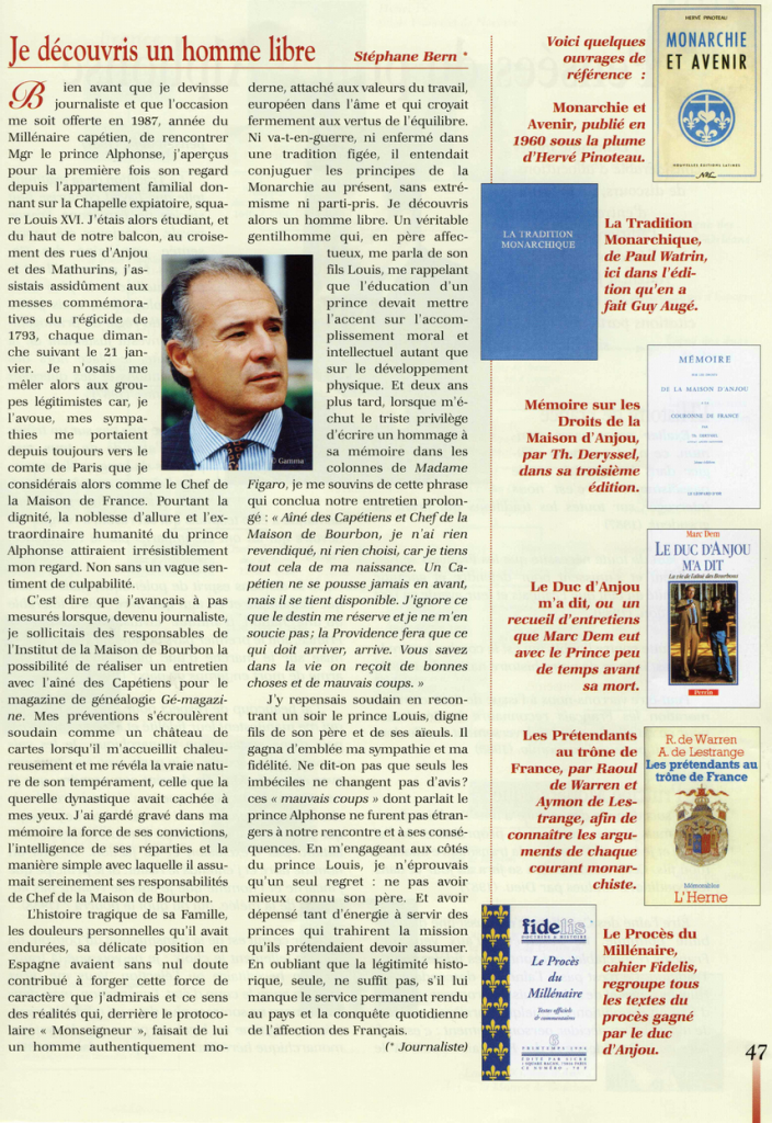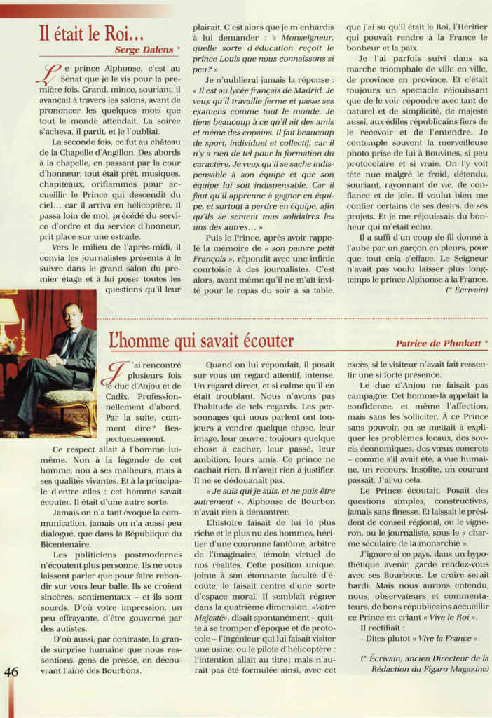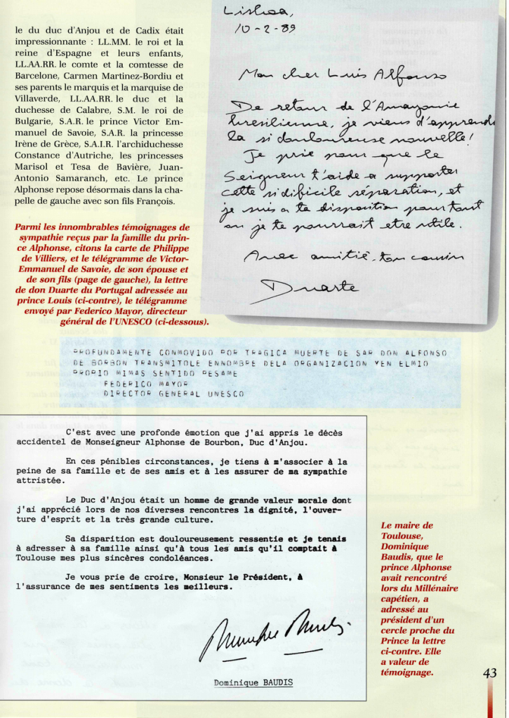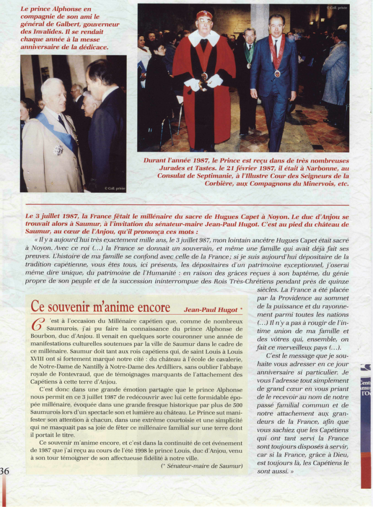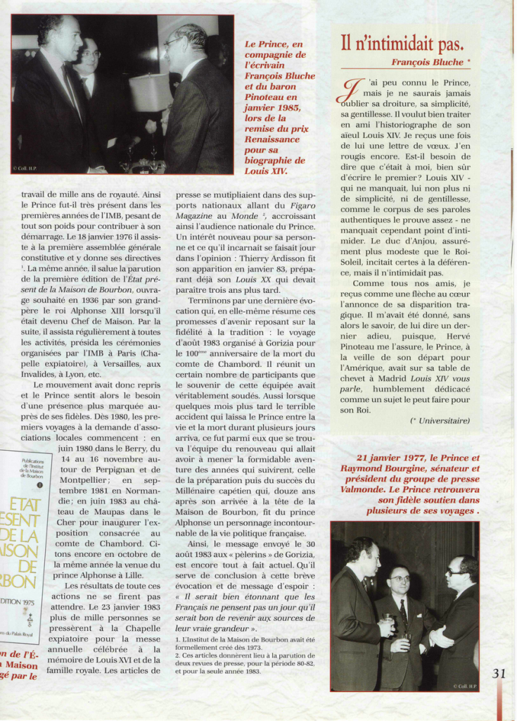 « Dès que j’ai eu l’honneur et le bonheur de faire la connaissance de Mgr le duc d’Anjou, puis de l’approcher et de m’entretenir longuement avec lui en différentes circonstances, j’ai immédiatement su et compris qu’il existait quelque chose de sacré dans sa personne, toute de lumineuse simplicité.