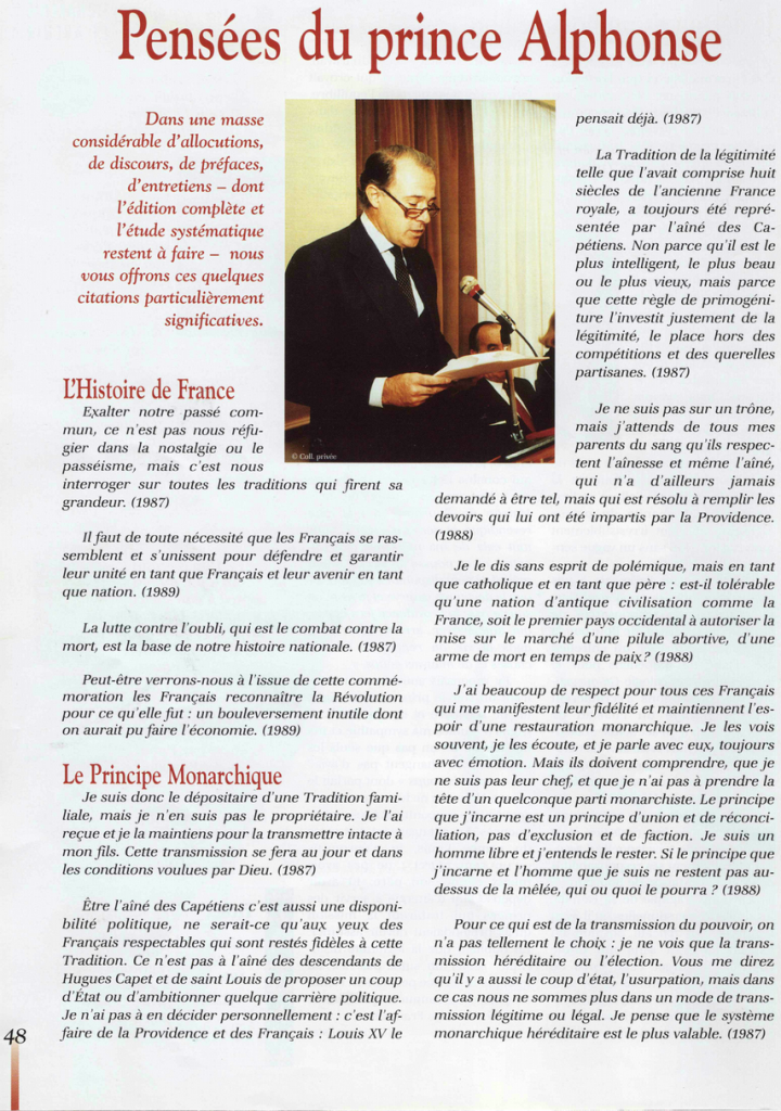 C’est vrai que le duc d’Anjou n’avait pas le pouvoir. Mais j’ai la conviction qu’il était dépositaire d’une parcelle de divin. Ce n’est que cela, et rien de plus, la légitimité. »
